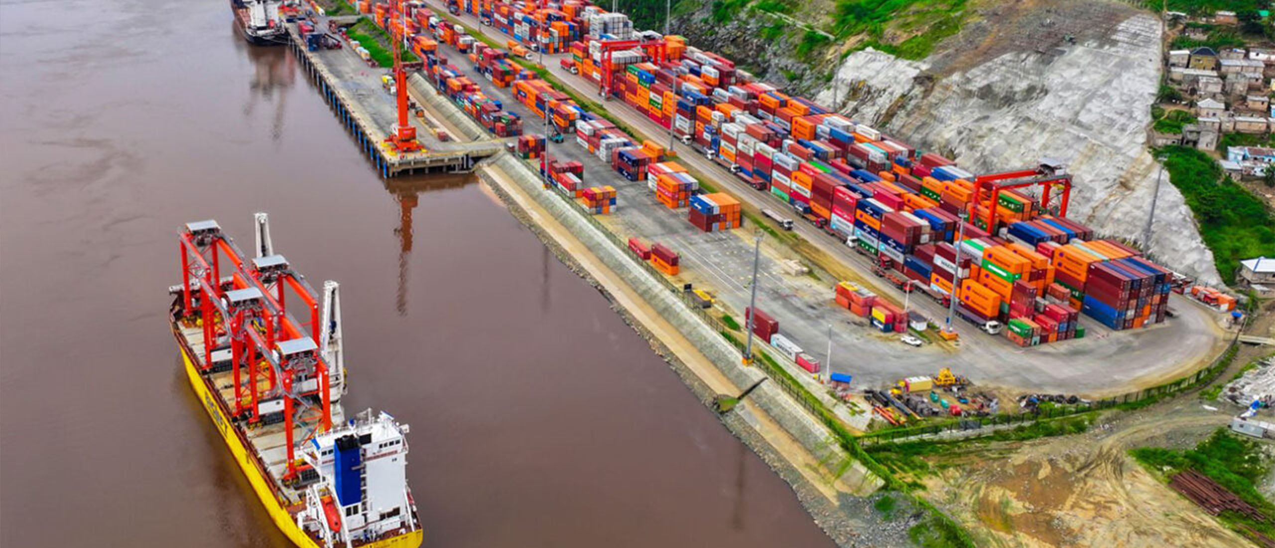 Nous exploitons le terminal à conteneurs du port de Matadi : manutention, stockage, gestion des flux navires–camions, coordination avec la ligne maritime et les autorités.
